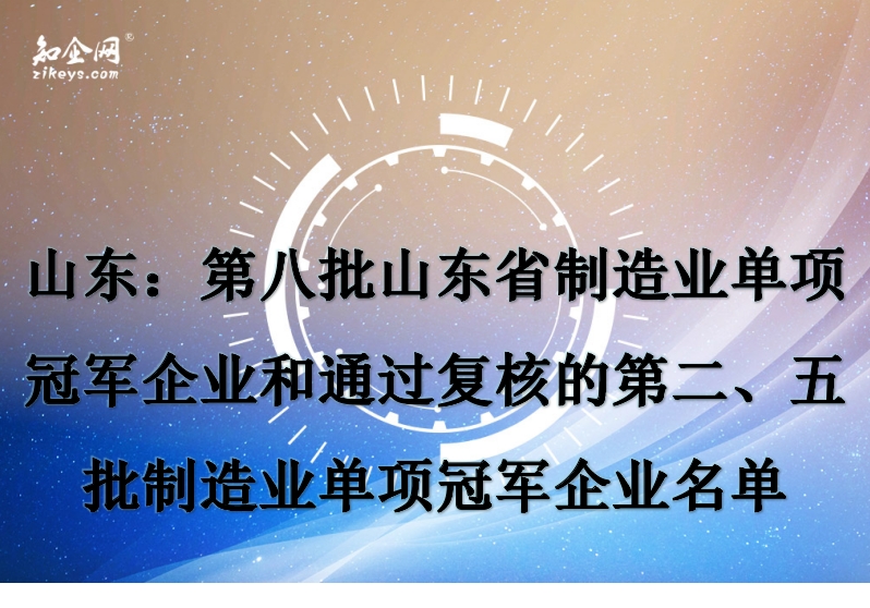 山东:第八批山东省制造业单项冠军企业和通过复核的第二、五批制造业单项冠军企业名单