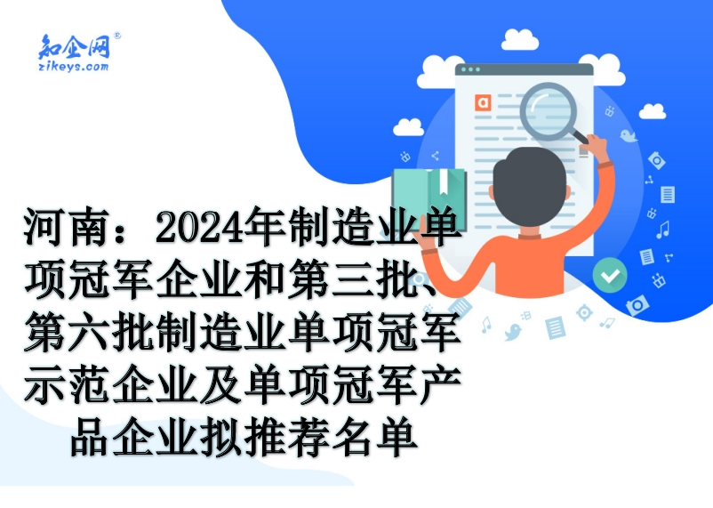 河南:2024年制造业单项冠军企业和第三批、第六批制造业单项冠军示范企业及单项冠军产品企业拟推荐名单